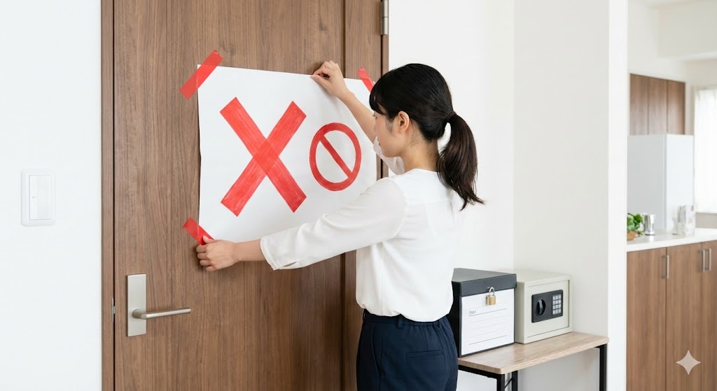 ✅貴重品は離さない! 現金や通帳は「立入禁止部屋」で管理し、絶対に自分で運ぶ。