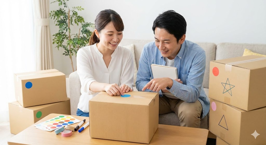 例えば、ホームセンターなどで売っている「赤色のテープ」や「派手なシール」を使ってみてください。「赤いテープの箱は大事なもの」と決めておけば、私たち作業員にも「これは注意して運ばなきゃ」と一目で伝わりますし、トラックの奥に積んでもらうなどの指示も出しやすくなります。
