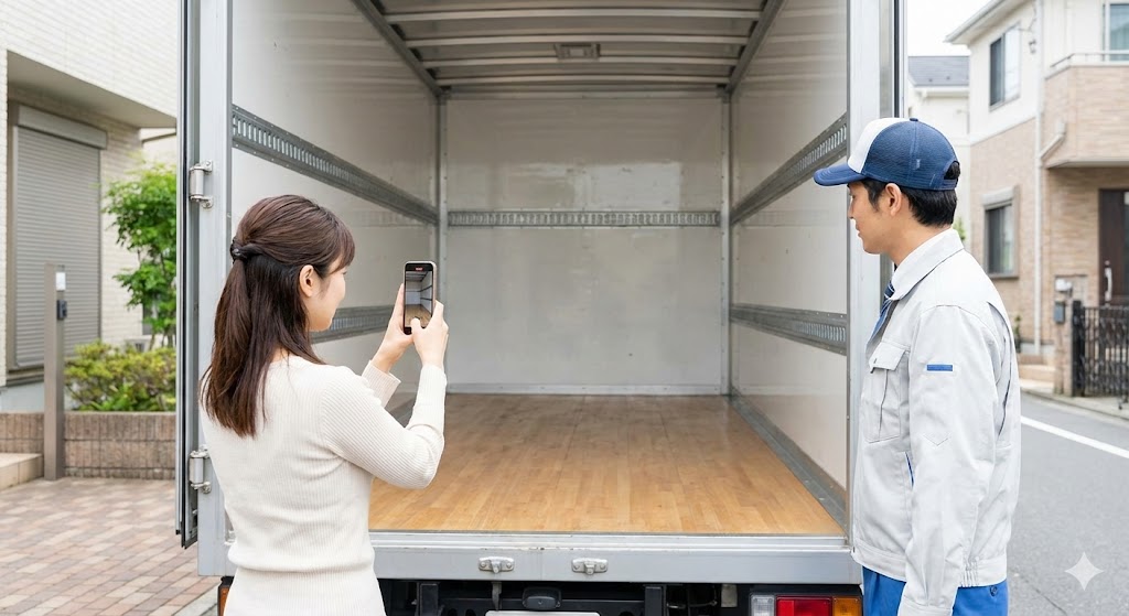 引越し先で荷物を降ろした後も、同じように空っぽになった荷台を動画に撮ります。「あとで探したらなかった」という時に、「トラックには残っていなかった」という証明にもなります。