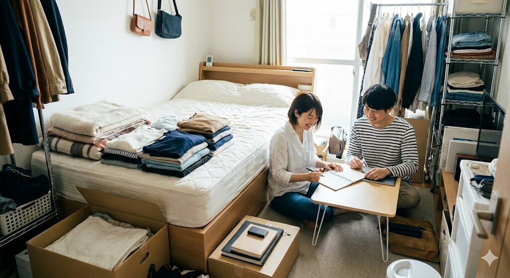 二人分の服や趣味の荷物を運び込むと、部屋の床が見えなくなることもあります。数字だけで判断せず、荷物の量をしっかり考えることが大切です。
