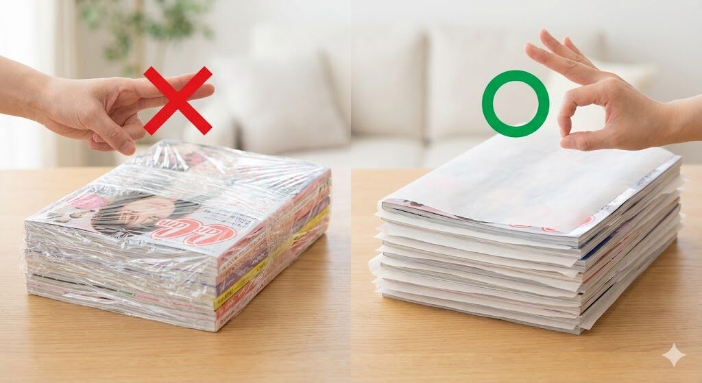 「ラップぐるぐる巻き」は危険!表紙が張り付く恐れあり