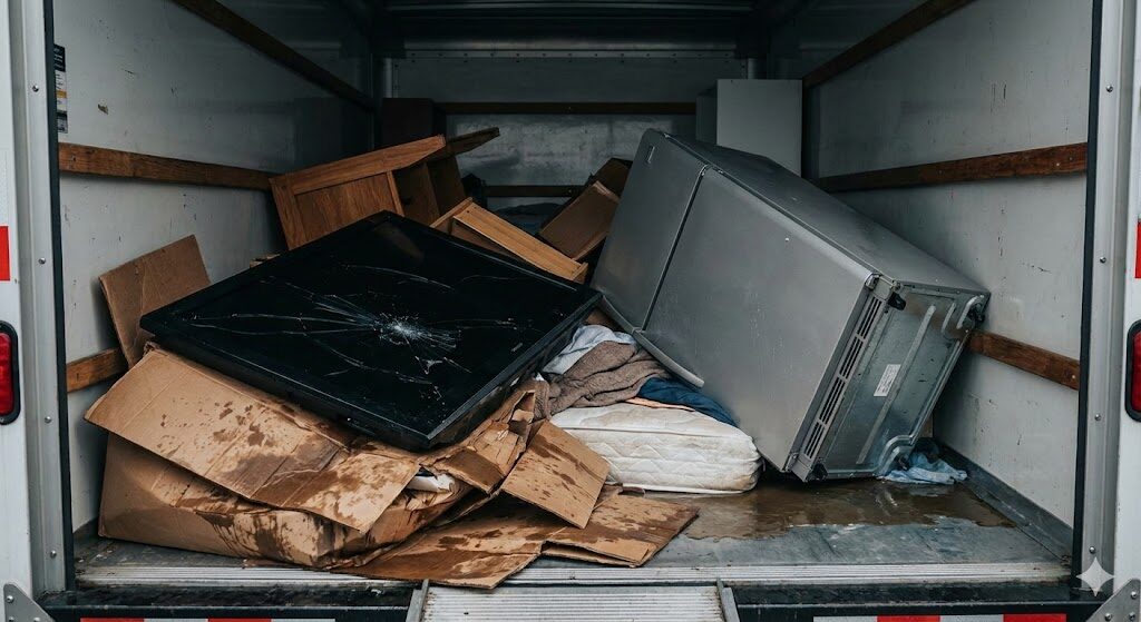 洗濯機や冷蔵庫の中に残っている水を抜かないで運ぶと、トラックの中で水が漏れ出します。