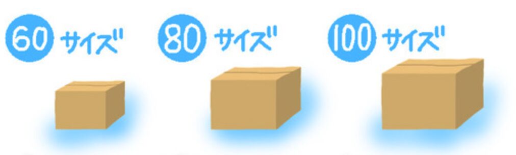 具体的には、宅配便の「60サイズ」や「80サイズ」が理想的ですね。(60サイズとは高さ横幅奥行きの3つの合計が60センチ以内ということ)