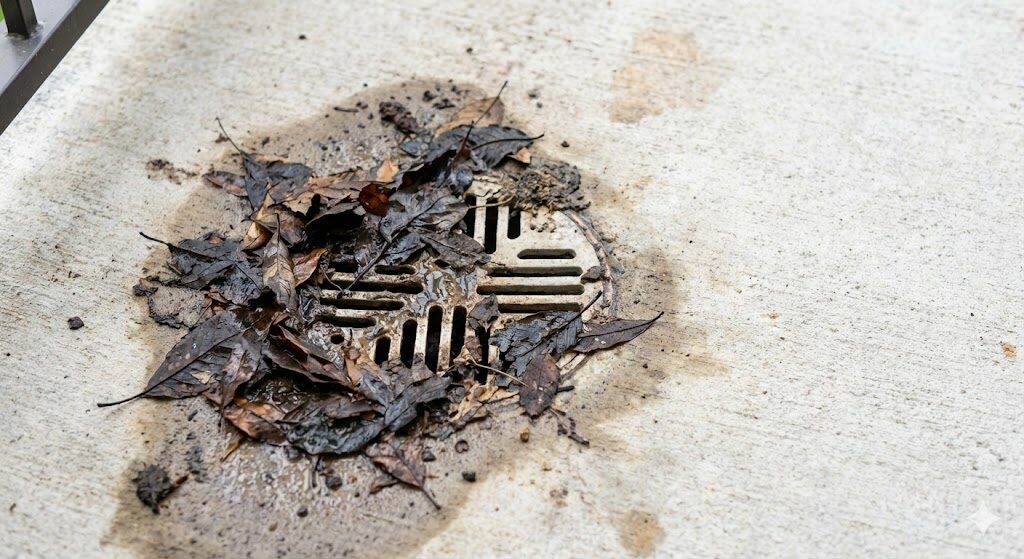 排水口(ドレン)の「落ち葉・泥」は詰まりの原因!必ず取り除く