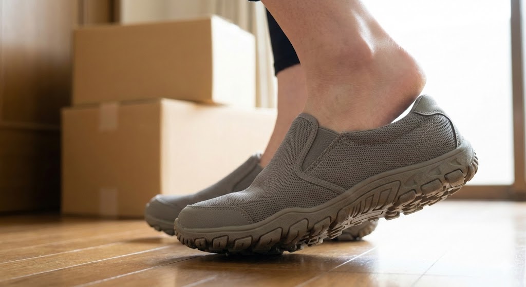重たい荷物を運ぶとき、一番怖いのは腰を痛めてしまうこと。足元がグラグラすると、バランスを崩して荷物を落としたりするとまずい…。また、新居と旧居を行ったり来たりするとき、靴の脱ぎ履きが多いと、靴紐を直すだけでも地味に疲れてしまいます。