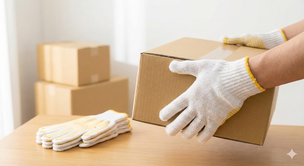 引っ越し作業で重い段ボールや家具を持つとき、手が汗で滑ってしまうと、荷物を落として怪我をしたり、壁を傷つけたりする危険があります。