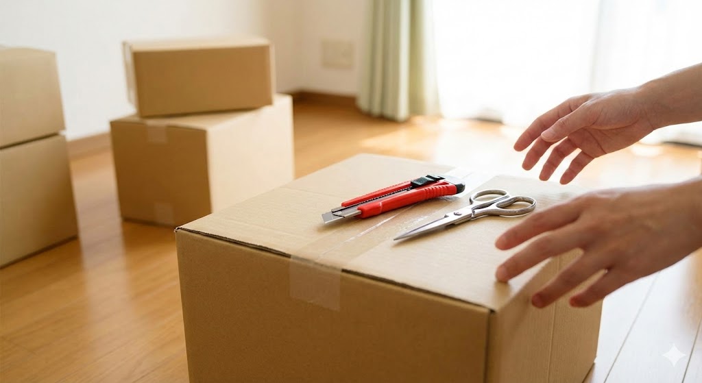 - 刃物(カッター・ハサミ): 荷解きで順番待ちをさせないよう複数用意。
