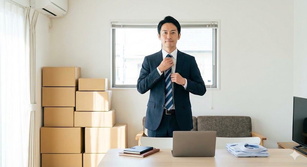 部屋をある程度片付けて、生活のリズムを整えてから出社する。