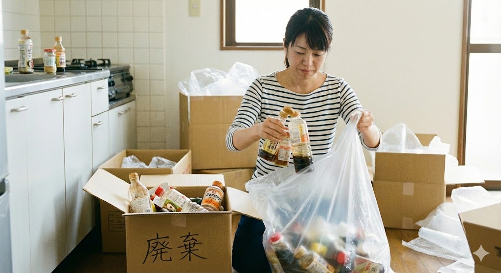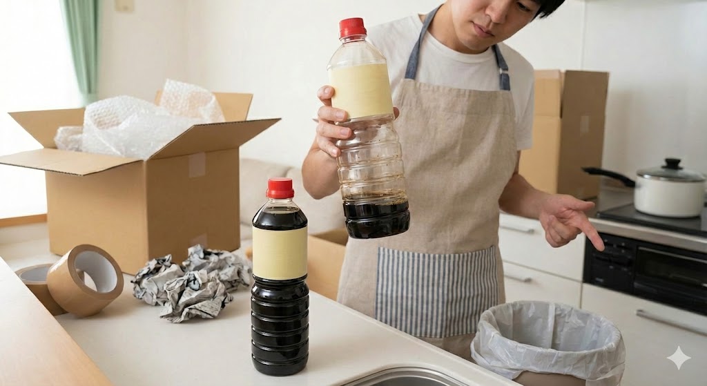 - 液漏れリスク: 醤油・油・タレなど開封済みの液体は、荷物を汚すリスクが高いため処分を推奨。