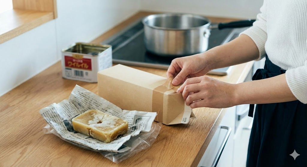 - 液体・油: 流しに捨てず、牛乳パック+新聞紙に吸わせて「燃えるゴミ」へ。